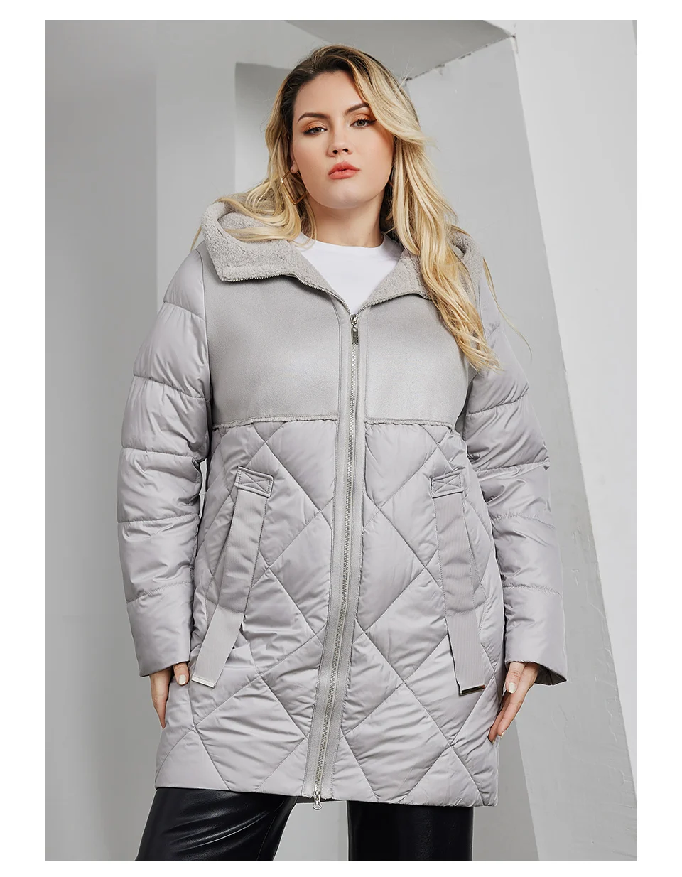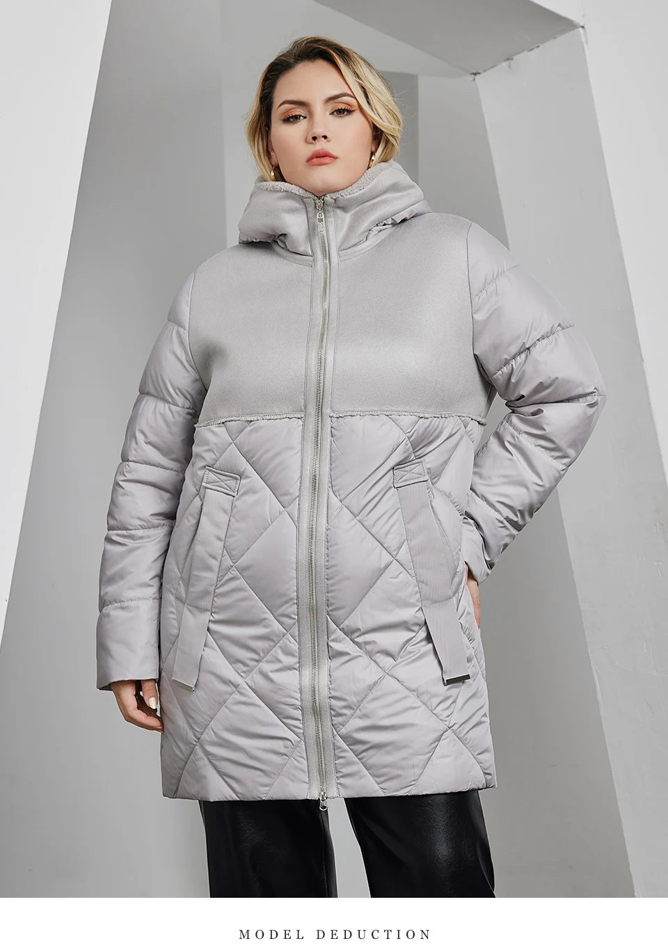Astrid Women's Winter Jacket 2025 Plus Size Women Parka Long Bio Down Jackets Stitching Design Thick Fleece Hooded Quilted Coat