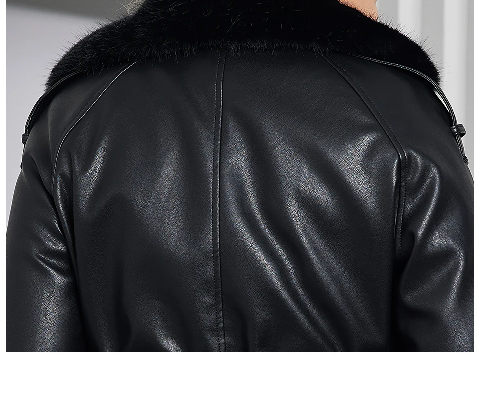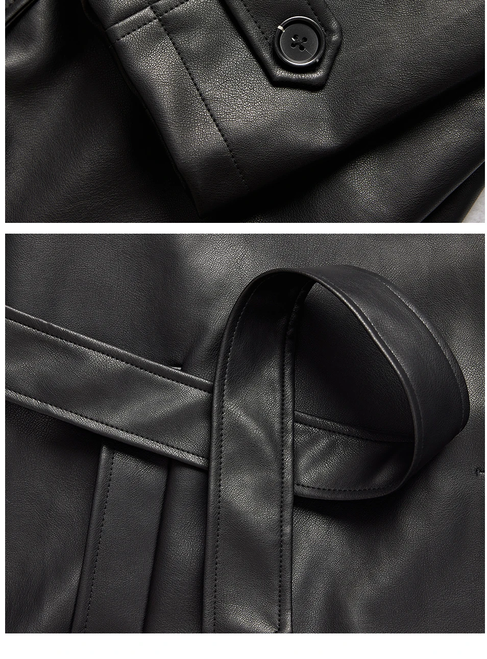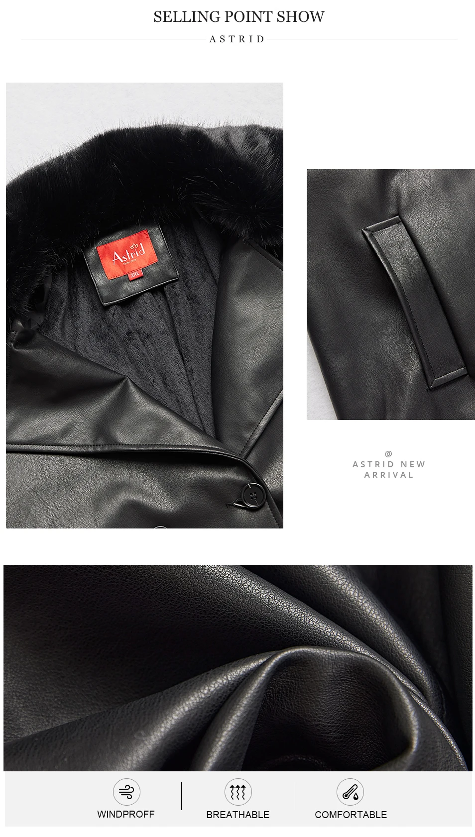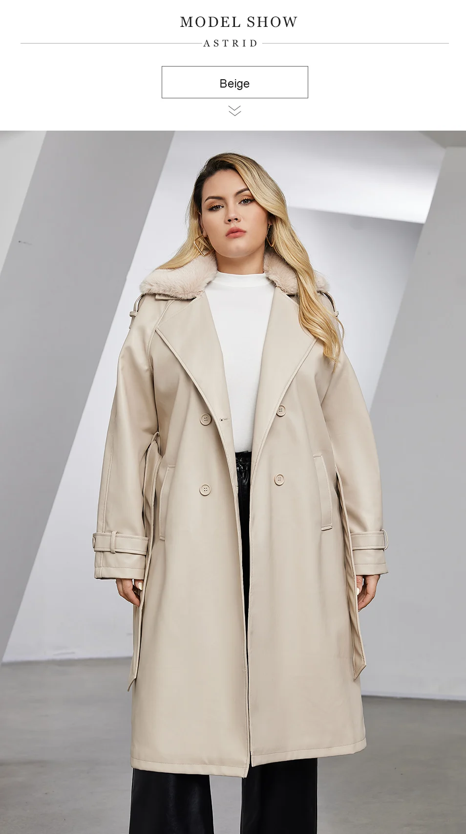Astrid Plus Size Faux Leather Trench Coat Women Fur Collar Lapel Belt Double Breasted Loose Waterproof Jacket Fashion PU Coat
