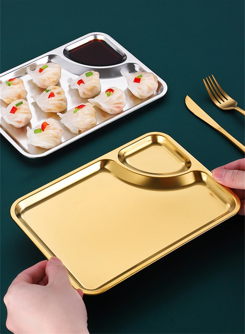 Kitchen Stainless Steel Sauce Dipping Tray Dumplings Snack Ketchup Vinegar Dish Compartment Plates for Food Tableware Container
